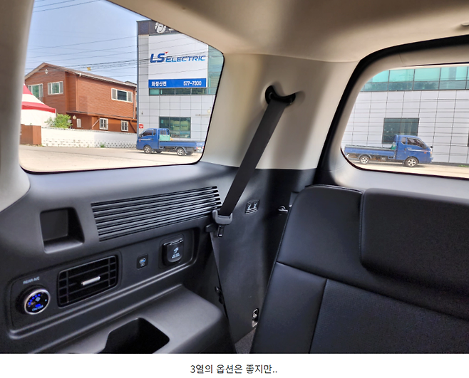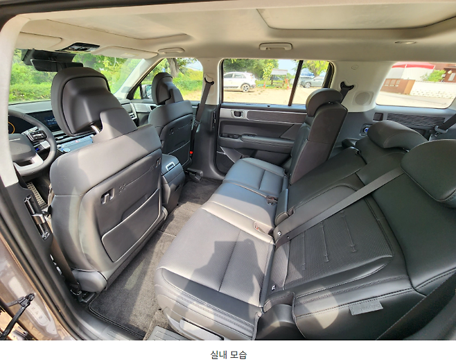 또한 루프라인 덕분에 C필러 창문이 디자인이 아니라 실제로 제대로된 창문 역할을 하기 때문에 3열에 탑승해봐도 크게 답답하지 않았습니다. (개방은 불가) 거기에 시트의 높이가 약간 높기 때문에 1열까지 시선이 바로갈 수 있기 때문에 답답함이 크게 느껴지지 않았습니다.