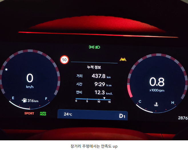 그러면 이 파워트레인이 들어간 차량, 매력이 전혀 없느냐? 그건 아닙니다. 장거리 주행을 해보니 높은 출력 덕분에 운전이 편안합니다. 차체를 끌기 어려울 정도로 부족한 차량이 아닌지라 속도를 쭉 올려내놓고 탄력 주행을 하게 되는 경우가 많기 때문에 이때의 연비는 의외로 좋은 편 입니다.