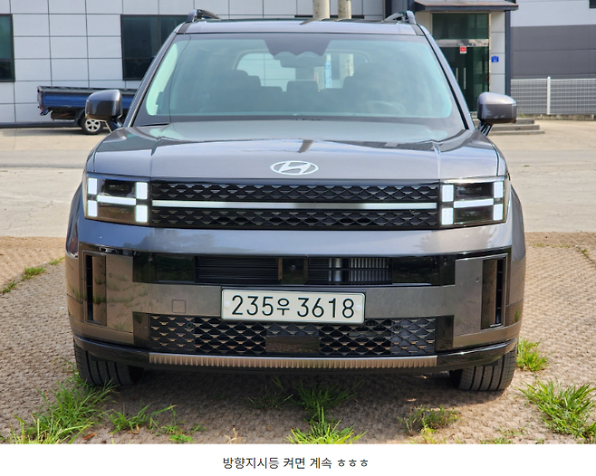 앞모습은 굉장히 절제되어 있고 화려하지는 않아보이지만 H-H 형태의 거대한 주간주행등 덕분에 존재감이 상당합니다. 특히나 야간에 램프가 점등되었을 때는 방향지시등이나 비상등을 켜면 주변 차량에 'ㅎㅎㅎ(=HHH)'를 계속 쏘기 때문에 다소 민감할 정도이기도 하죠. 램프가 상당히 크고 밝습니다.