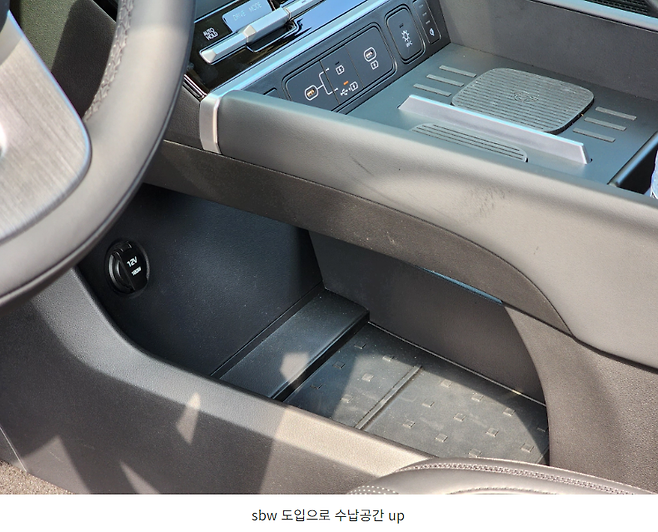 또한 통풍시트 등을 사용할 때 터치 방식인데 뭔가 한 박자 느리거나 인식이 원할하지 않는 순간들이 있어 무더운 순간에 차량에 탑승하게 되었을 때 좀 짜증나는 순간들이 있었습니다. 대신 공조기 패널 하단에 위치하고 있는 오토홀드 버튼이 있는 곳은 레버의 크기도 크고 재질도 좋으며 작동하기도 편했습니다.