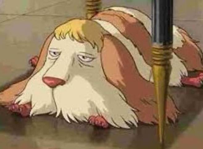 '하울의 움직이는 성'에 등장하는 강아지 힌은 극중에서 만사 귀찮은 표정을 짓고 있는 것으로 유명한데요.