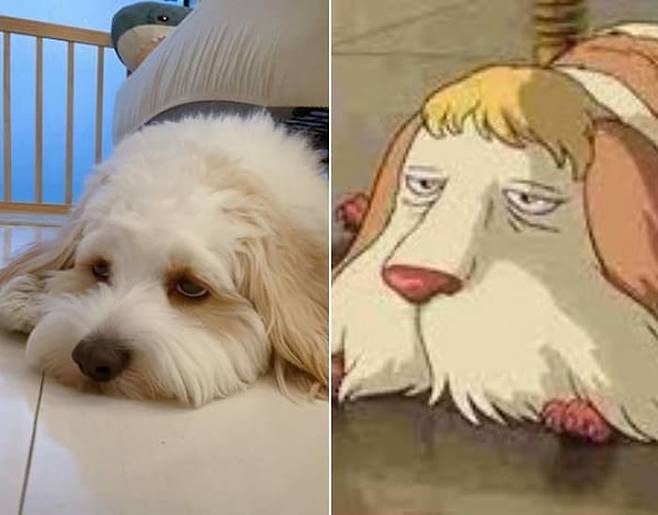 사연은 이렇습니다. SNS상에는 지브리 인기 애니메이션이자 명작으로 손꼽히는 미야자키 하야오 감독의 작품 '하울의 움직이는 성' 속 강아지 힌의 실사판이 올라온 것.
