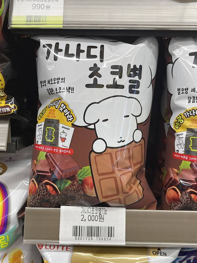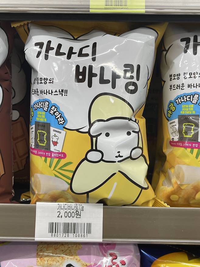 랜덤 ‘가나디 띠부씰’이 동봉되어 있어, 60종 수집 요소(일반·희귀·야광)까지 갖춘 콜렉터 감성 만점 스낵이에요.