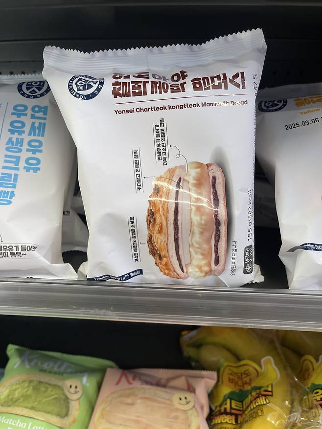 CU에서 판매 중인 ‘연세우유 찰떡콩떡 맘모스’는 두툼한 소보로 빵 속에 인절미 크림과 쫀득한 찰떡이 들어간 디저트로, 한 입에 고소한 향과 찹쌀떡의 식감의 조화가 좋아요.