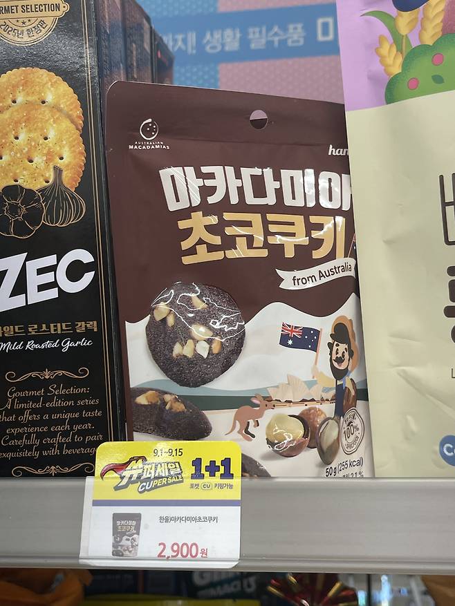 호주산 인증 마카다미아가 박힌 바삭한 쿠키로, 고급스러운 견과의 풍미가 돋보여요.