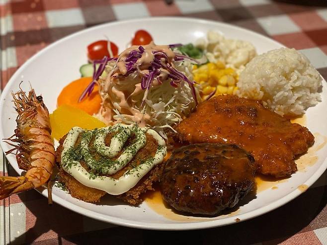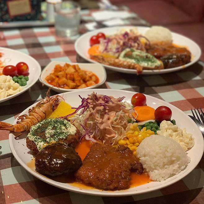 일산 시장 안에 위치한 40년 노포 일산 '밤비노경양식'. 입구부터 정겨운 분위기가 물씬 풍기는 이 집은 이미 일산에서 경양식 맛집으로 소문이 자자하다. 레트로 감성이 가득한 그릇에 담겨 나오는 음식부터 옛 추억이 물씬 느껴진다. 대표 메뉴인 밤비노 정식은 다채로운 색감부터 눈길을 사로잡는다. 돈까스는 물론이고 함박스테이크와 생선까스, 마카로니, 단무지, 샐러드, 콩, 새우와 과일까지 다채로운 색감으로 푸짐하게 채워져있는 정식은 다양하게 먹을 수 있어 더욱 좋다.