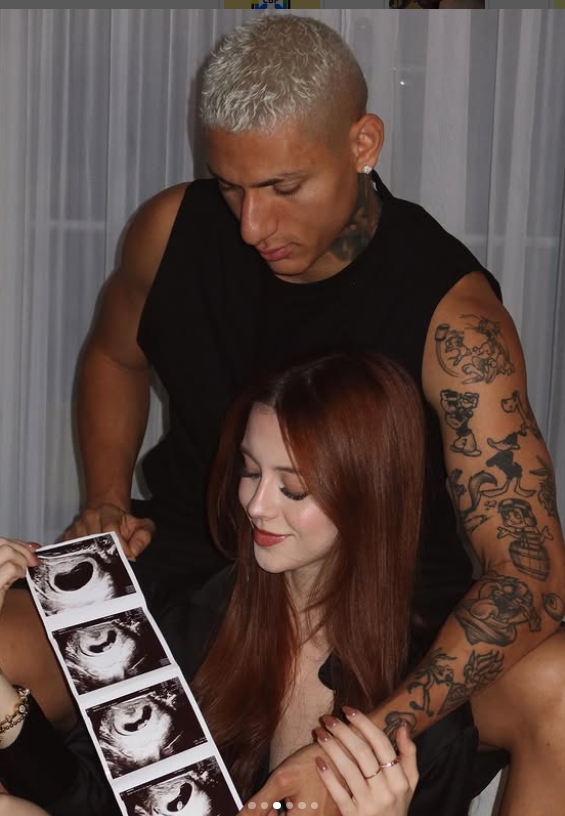 게시글 속 히샬리송과 그의 여자친구 아만다 아라우호는 태아를 확인하기 위해 찍은 초음파 사진을 함께 들고 웃거나 미래에 태어날 아이를 위해 준비한 듯한 슬리퍼를 한 짝씩 들고 있었다.