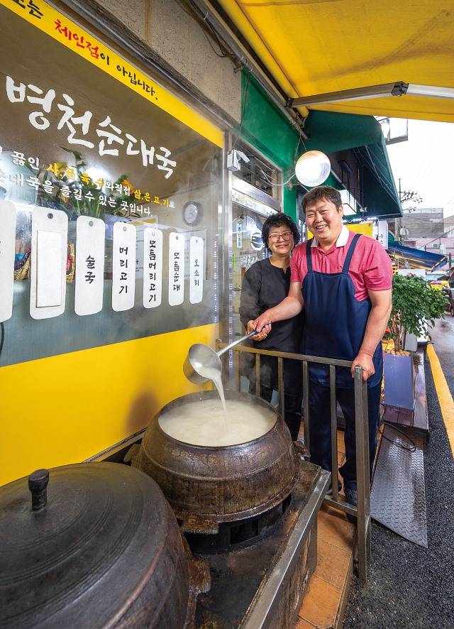 최근 1만 번째 착한가격업소로 지정된 ‘봉천동식당 병천순대국’을 찾았습니다. 서울 관악구 주택가에 위치한 이곳은 대표 메뉴인 순댓국을 인근 상권 평균가보다 1500원 저렴한 8000원에 제공하고 있습니다. 김준길(54)·신종숙(51) 부부는 “누구든 부담 없이 순댓국 한 그릇 든든히 먹을 수 있기를 바랐다”며 “12시간 이상 가마솥에 고기를 삶고 육수를 내며 매일 발품을 팔아 구매한 식재료에 직접 담근 김치까지 정성을 담았다”고 말했습니다.
