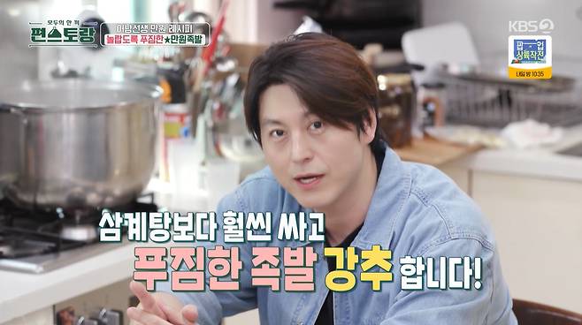 12일 방송된 KBS 2TV '신상출시 편스토랑'(이하 '편스토랑')에서는 '믿고 먹는 어남선생' 류수영이 '주방의 고수 어남선 씨'로 등장, 역대급 만원 레시피 '만원 족발'을 선보였다.