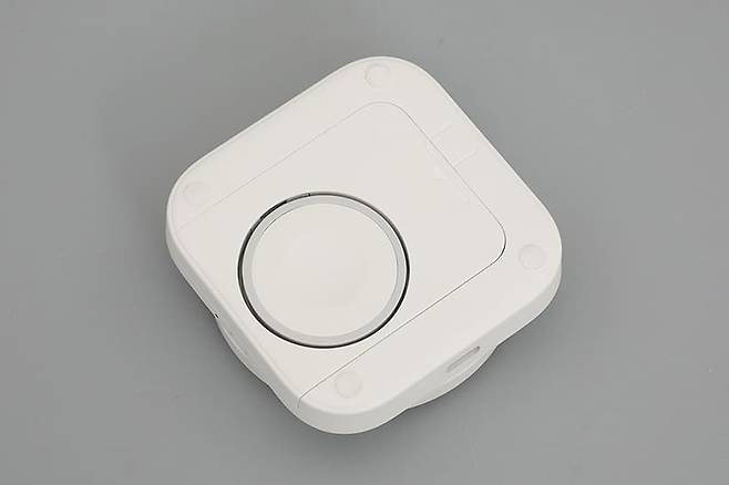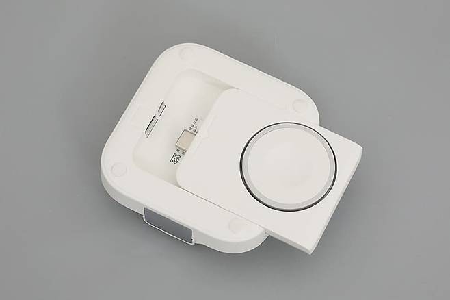 박스에서 꺼낸 본체의 모습은 모서리가 둥글고 납작한 네모 위에 마찬가지로 납작한 원형 판이 겹쳐져 있는 형태이다.