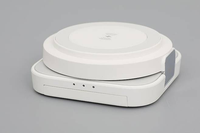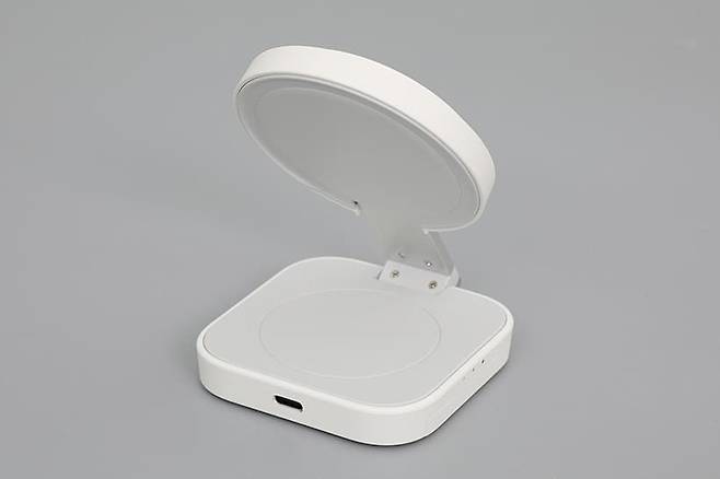본체 바닥면에 분리한 뒤 옆면에 끼워 넣은 파트는 스마트워치 충전패드로, 원형 충전부를 눕혀서 충전하거나 세워서도 사용할 수 있다. 단, 스마트폰과는 달리 스마트워치의 무선충전은 표준화되지 않았기 때문에 본 모델의 경우 애플워치만 지원하고 있다.