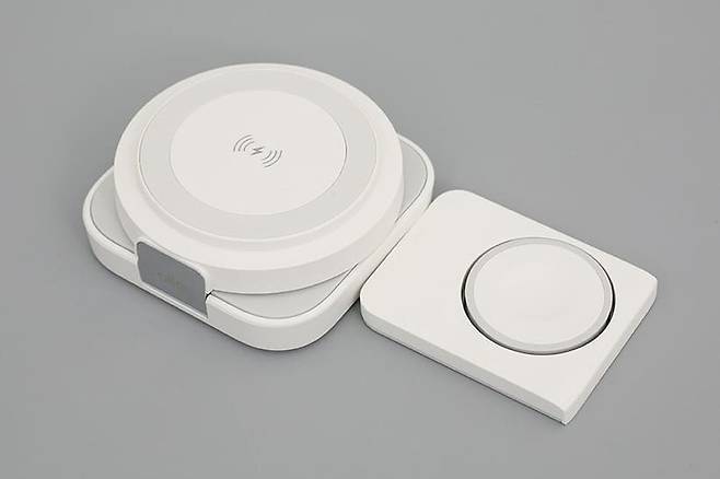 평소 개인적으로 잠들기 전 반드시 충전을 해야 하는 기기를 꼽자면 스마트폰과 스마트워치, 그리고 블루투스 이어폰이다. 이것만 해도 벌써 세 개의 충전 어댑터를 써야 해서 4구 멀티탭을 쓰면 한 구만 남게 되고, 멀티포트 USB 충전기를 써도 USB 포트를 세 개나 차지하게 된다. 태블릿PC와 핸디용 선풍기 등 충전할 기기가 많다면 멀티포트 충전기도 부족한 상황이 될 수 있는데, 알로코리아 폴더블 맥세이프 무선 충전기 UC315WMS만 있으면 단 하나의 포트로 스마트폰과 스마트워치, 그리고 블루투스 이어폰까지 동시에 충전할 수 있다.