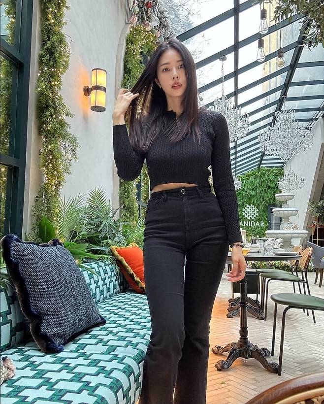 서동주는 슬림한 핏의 크롭 니트에 하이웨이스트 블랙 데님 팬츠를 매치해 군더더기 없는 실루엣을 강조하며, 우아한 분위기 속에서도 강렬한 카리스마를 발산했습니다.