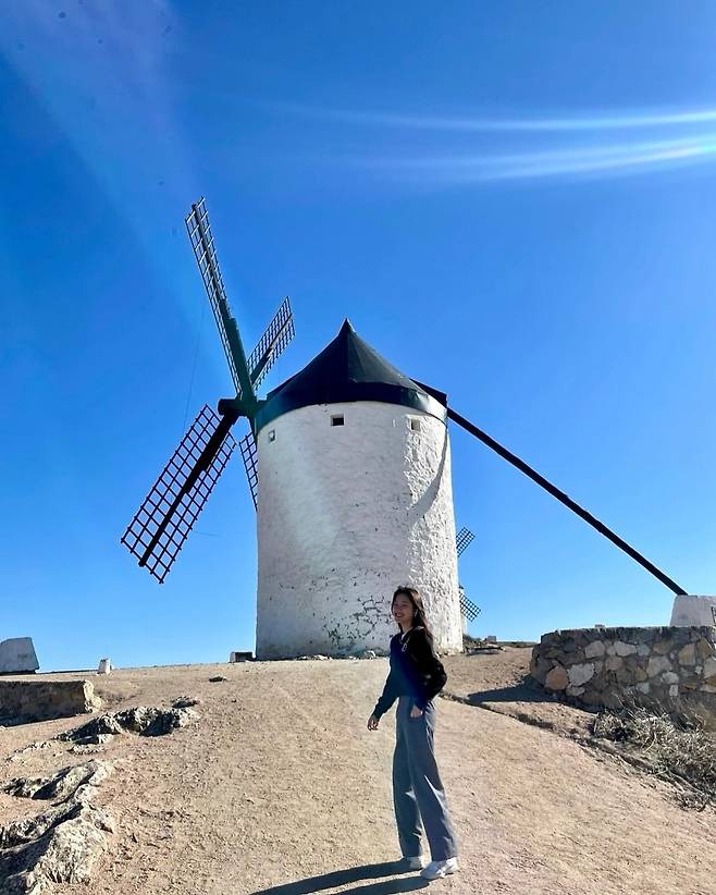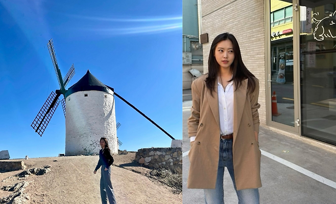풍차 앞에서 포착된 최리는 네이비 니트와 와이드 핏 데님 팬츠를 착용해 편안하면서도 세련된 여행 패션을 보여줬다. 자연광 아래에서 더욱 돋보이는 이 스타일은 활동성과 멋스러움을 모두 잡으며, 여행지에서도 감각적인 패션 센스를 드러냈다.