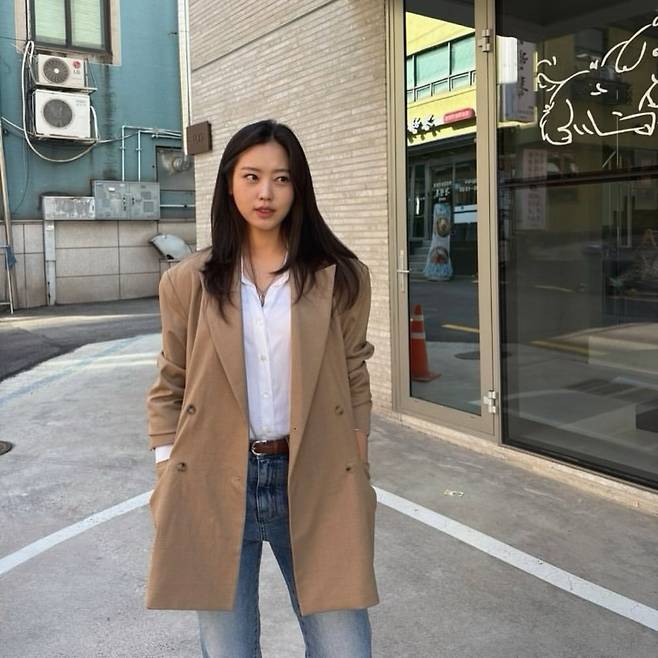베이지 컬러의 롱 재킷과 화이트 셔츠, 데님 팬츠를 조합한 최리의 룩은 클래식하면서도 실용적인 매력을 발산한다. 허리 라인을 살짝 강조한 벨트 디테일은 깔끔한 실루엣을 완성하며, 자연스러운 헤어스타일과 함께 도시적인 감각을 더했다.