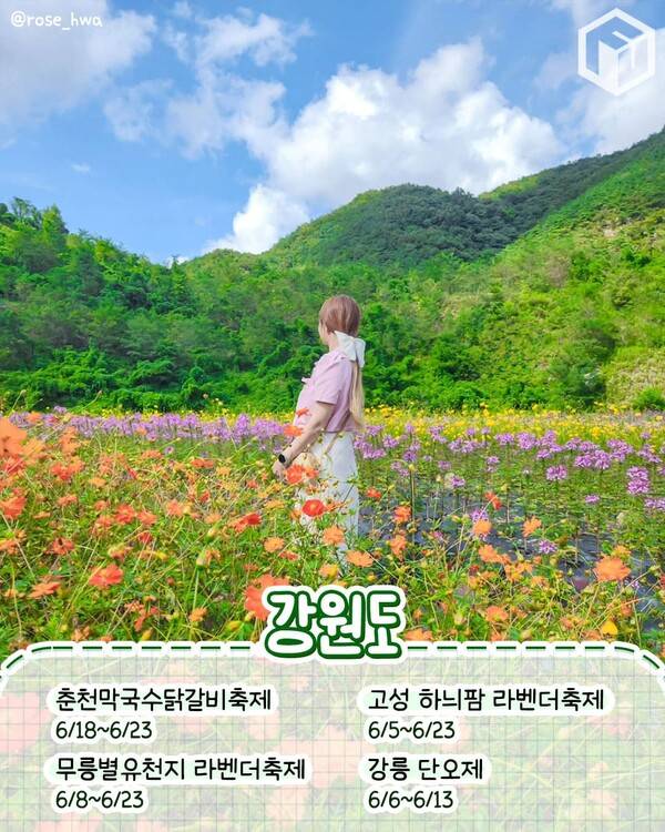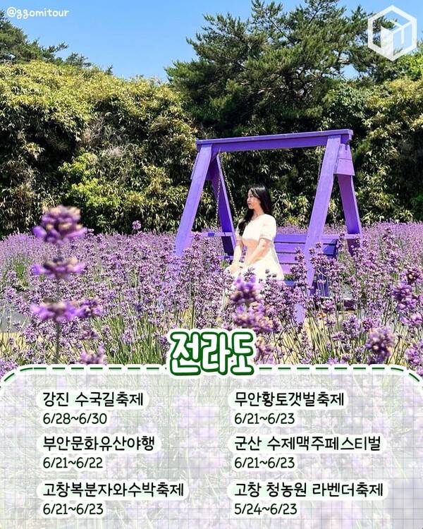 여행가기 가장 좋은 달인 6월에는 전국 곳곳에서 축제 소식이 들려옵니다. 여름꽃을 대표하는 수국과 라벤더 축제부터 자연과 역사 유적을 활용한 축제, 지역 특산물 축제 등 다채로운 축제로 매일 매일이 흥겨울 예정인데요.