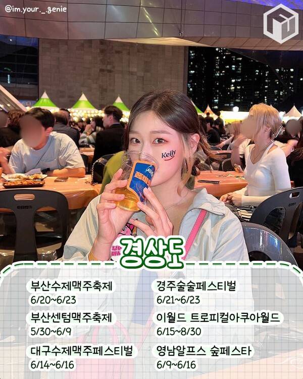 경상도는 6월 다양한 축제로 곳곳이 들썩일 예정입니다. 부산과 대구, 경주에서 각각 맥주와 술 페스티벌이 개최될 예정인데요. 부산 센텀맥주축제는 6월 9일까지 진행되며 부산 수제맥주축제는 6월 20일부터 23일까지 진행됩니다. 전국의 다양한 술을 맛볼 수 있는 경주 술술페스티벌은 6월 21일에서 23일 개최를 앞두고 있습니다.