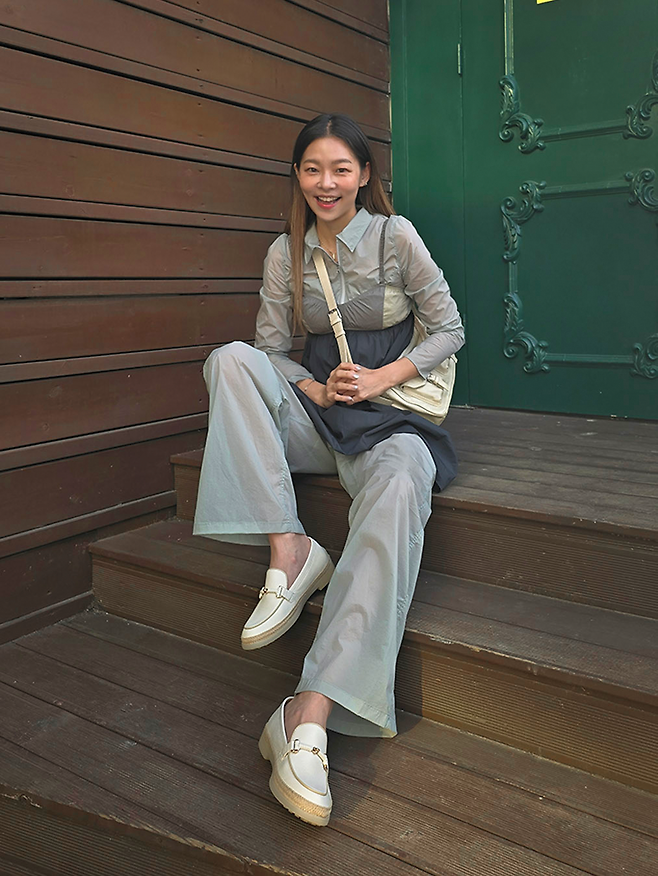 아이보리 컬러의 로퍼를 선택해