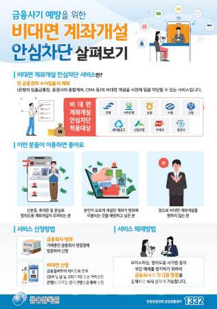 한편 비대면 계좌개설 안심차단 서비스의 신청내역은 한국신용정보원이 운영하는 본인신용정보열람서비스 누리집에서 확인할 수 있다.