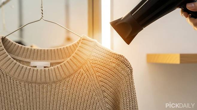 물기가 섬유를 부드럽게 만들고, 드라이기 바람으로 형태가 다시 잡아준다. 이때 손으로 모양을 살짝 눌러가며 방향을 정리하면 더 깔끔한 결과가 나온다. 뜨거운 바람을 오래 쐬면 니트가 줄거나 딱딱해질 수 있어 강풍이나 너무 고온은 피하는 것이 좋다.