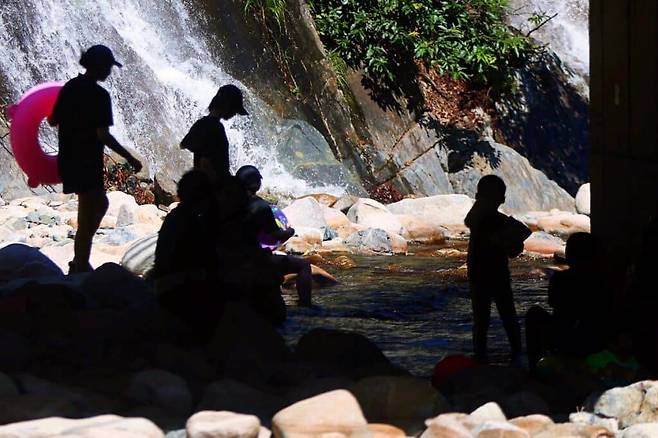 지난 30일 경남지역 낮 최고기온은 32~36도로, 그야말로 찜통더위의 날씨였다. 그늘진 물가에서 차가운 물줄기와 상쾌한 물소리를 즐기며 저마다 피서와 힐링의 시간을 보냈다.