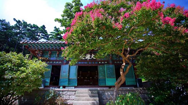 사찰까지 이어지는 숲길은 사계절 내내 푸른 솔잎이 바람에 흔들리는 정취를 느낄 수 있다. 사람들의 발길이 비교적 적은 편이라 산책로가 온전히 나만의 길처럼 느껴지고, 그 길을 따라가다 보면 어느새 사찰의 경내로 스며들게 된다.