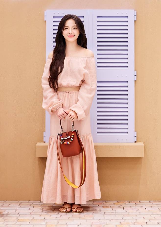가수 겸 배우 김세정은 보헤미안감성의 오프숄더 탑과 스커트 셋업의 화사한 핑크 투피스룩을 연출했다. 여기에 아이코닉한 로조 박스 버킷백으로 포인트를 주었다.