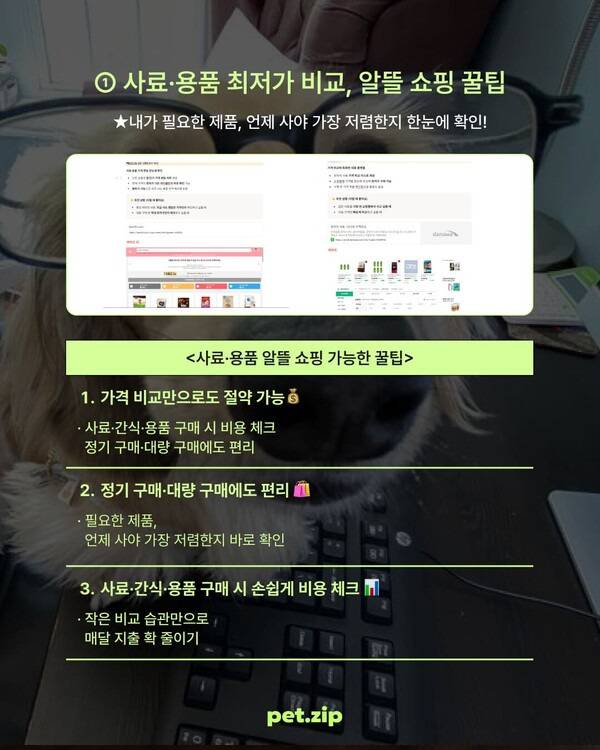 오늘 펫집은 아이들에게는 좋은 것만 해주면서도 반려동물 양육비를 줄일 수 있는 꿀팁 4가지를 총정리해 공유합니다. 내용이 많아 다소 간결하게 꿀팁을 소개해야 할 것 같은데요. 각 꿀팁 내용의 ✅표시를 클릭하면 자세한 내용을 보실 수 있으니 걱정하지 않으셔도 됩니다 :)
