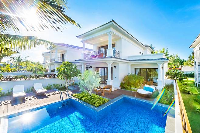 각 빌라는 전용 수영장을 갖추고 있습니다. 오션뷰 전망은 기본이죠.