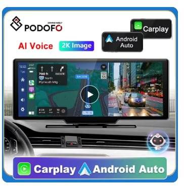 상품링크 ▶ Podofo-자동차 미러 비디오 녹화 카플레이 및 안드로이드 자동 무선 연결 GPS 네비게이션 대시 보드, DVR AI 음성