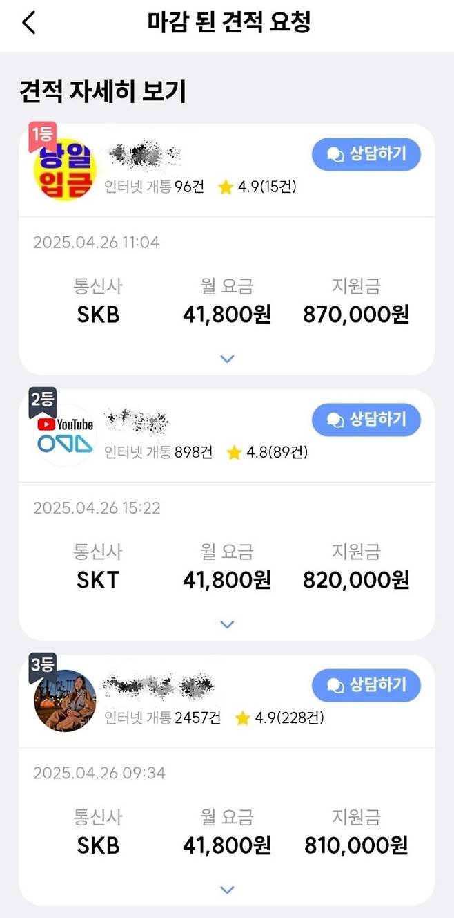 인터넷 설치는 광고 경쟁이 무척 치열하다. 하지만 광고를 많이 할수록 마케팅비가 많이 들고, 가격이 올라가기 쉽다. 그래서 업체들은 바로 싼 가격을 제시하지 않고, 어떻게든 빠르게 계약을 맺으려 한다. 그래서 카톡보다 전화를 선호하고, 많은 업체가 “오늘까지 설치하면 8만원 더 드릴게요”로 가입을 유도하는 경우가 많았다.