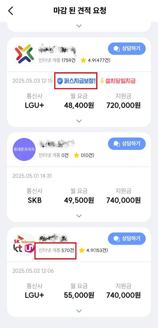무엇보다 ‘실거래 건수’ 자체가 안전한 매장임을 증명한다. 퍼스플러스에는 ‘인터넷 개통 건수’가 공개된다. 거래가 많다면 그것만으로 충분히 믿을만한 업체임을 보여준다. 문제가 생기면 퍼스플러스에서 입찰 자체가 불가능하기 때문이다.