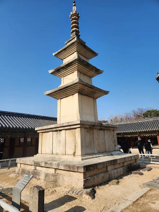 예전 국사 선생님께서는 석가탑의 몸 안에서 세계에서 가장 오래된 목판 인쇄물인 '무구정광대다라니경(국보)'이 발견되었을 때, 전 세계가 신라의 인쇄 기술과 고도의 불교문화에 경탄했음을 상기시켜 주셨다. 이어 다보탑 기단을 가리키며 들려주신 이야기는 지금도 가슴 한 구석을 먹먹하게 한다.