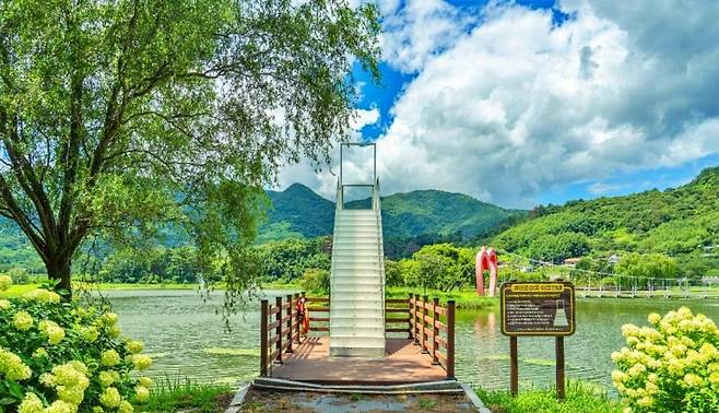 바람이 잔잔할 땐 호수 표면에 산과 하늘이 그대로 비치며 ‘거울 같은 풍경’을 만들어내기도 한다. 휴식 공간으로는 벤치와 쉼터가 마련되어 있으며, 호수를 따라 이어지는 길이 완만해 누구나 부담 없이 걷기 좋다.