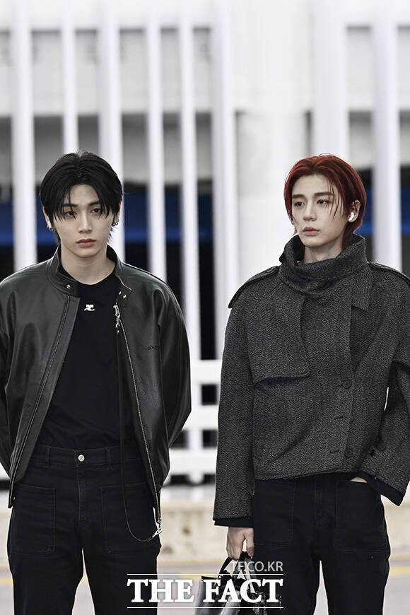 [더팩트 | 인천국제공항=송호영 기자] 그룹 보이넥스트도어의 태산(왼쪽)과 이한이 3일 오전 해외 일정 참석을 위해 인천국제공항에서 프랑스 파리로 출국하고 있다.