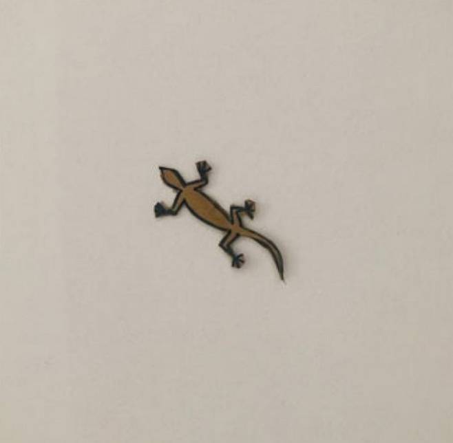 종이 박스로 도마뱀을 만들어 벽에 붙였더니
