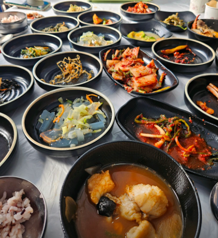 밥 + 탕 + 7가지 이상의 반찬이 기본! 푸짐함 그 자체