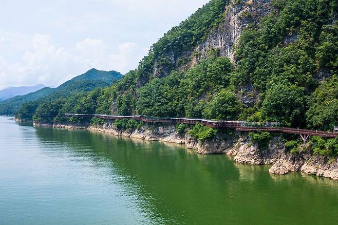 남한강의 강물과 깎아지른 절벽 사이에 설치된 1.2km의 잔도입니다. 단양의 유유히 흐르는 강과 울창한 산세를 바라보며 한국만의 협곡 산책의 진수를 맛볼 수 있답니다. 특히 만천하스카이워크와 연계하여 더욱 짜릿한 단양 여행을 완성할 수 있어요.