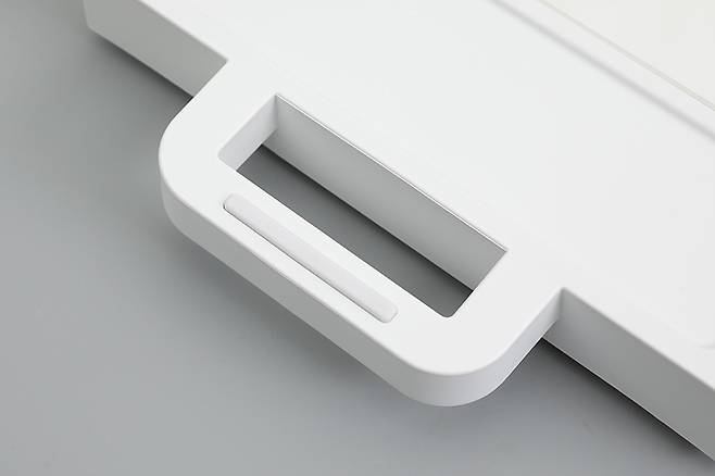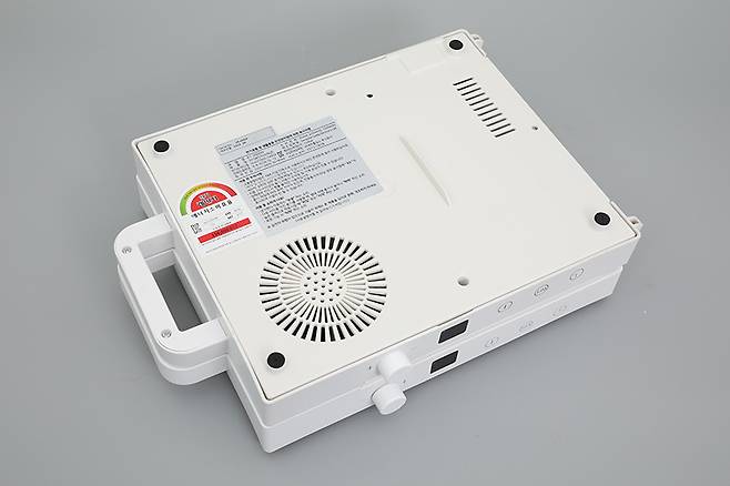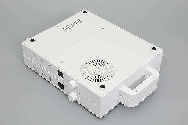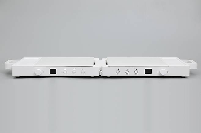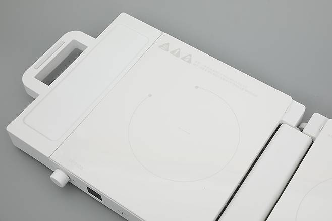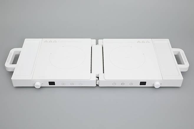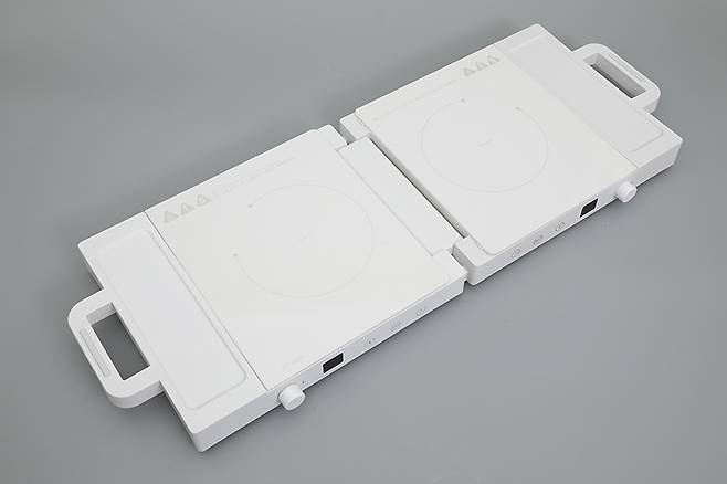 손잡이 두 개를 각각 한 손에 잡고 펼치면 접혀있던 본체가 열리면서 인덕션의 실제 형태가 드러난다.