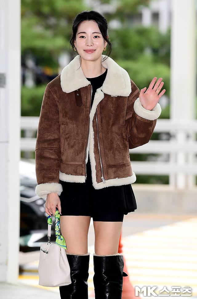 임지연은 브라운 컬러의 무스탕 재킷으로 따뜻함과 스타일리시함을 동시에 표현했습니다.