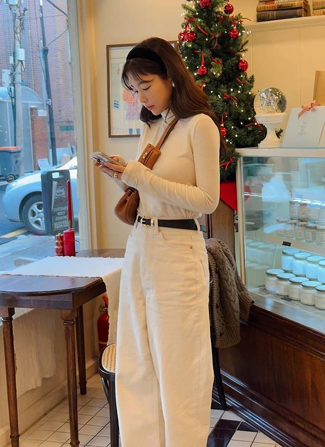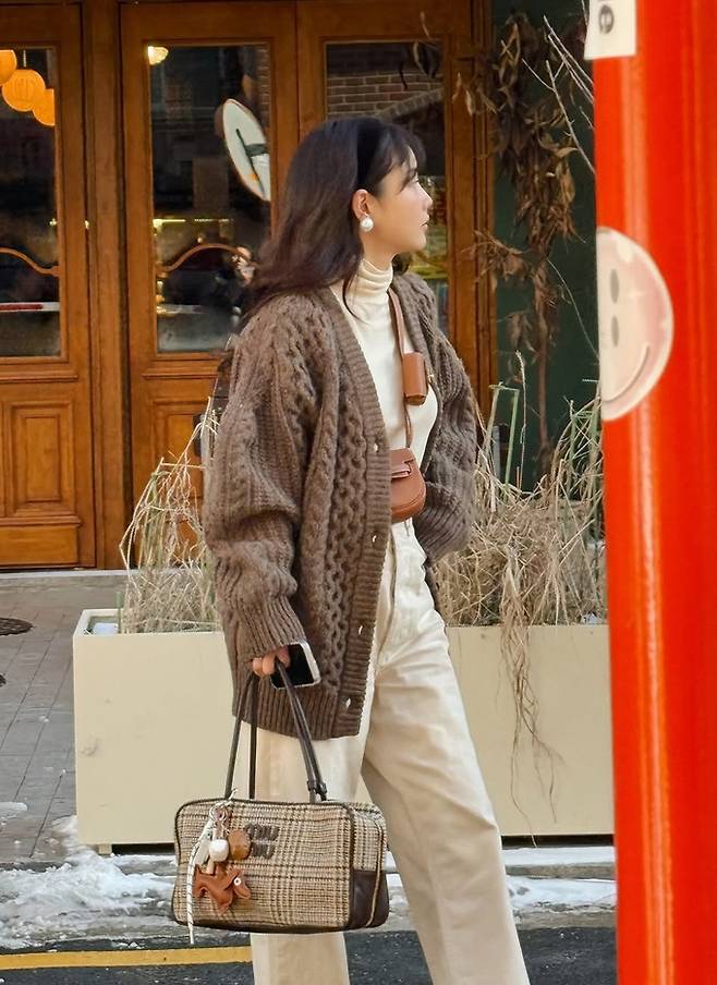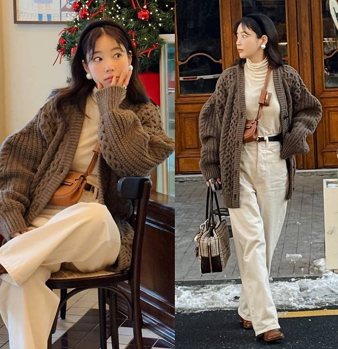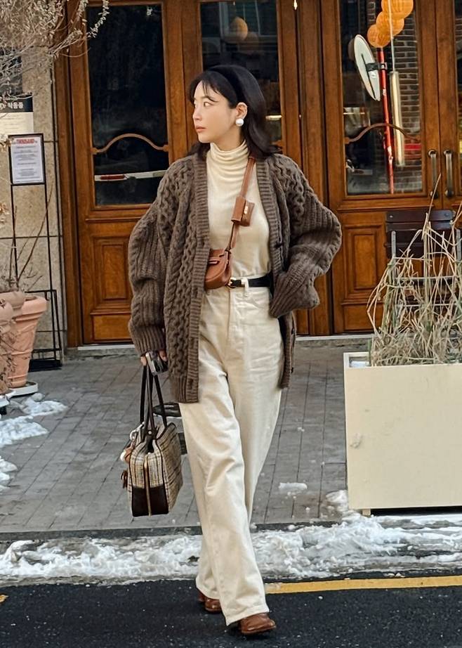 공개한 사진에서 기은세는 아이보리 톤의 팬츠와 터틀넥 셔츠에 다크 브라운 컬러의 오버사이즈 케이블 니트 카디건을 걸친 외출룩으로 스타일리시한 감각을 드러냈다.