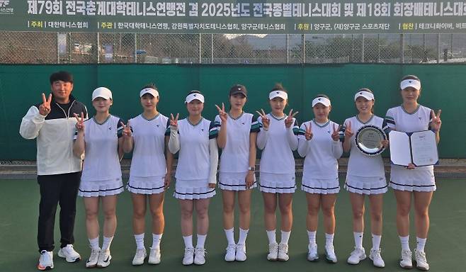 4월 6일 강원도 양구테니스파크에서 열린 제79회 전국춘계대학테니스연맹전 겸 2025 전국종별테니스대회 및 제18회 회장기테니스대회 단체전에서 한국체육대학교가 남녀부 모두 우승을 차지하며 대학 테니스의 최강자임을 입증했다.