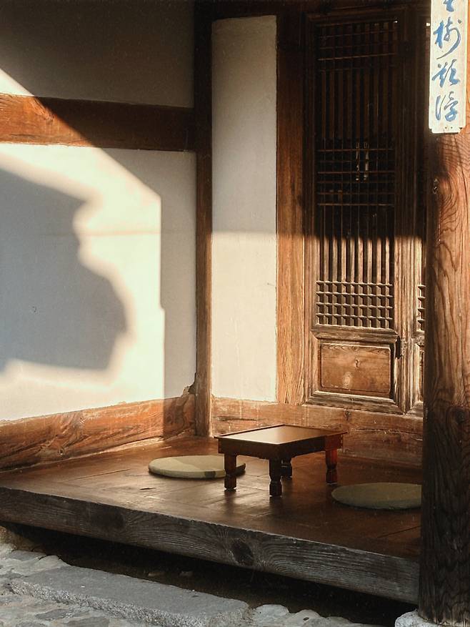 • 실제 전통 한옥을 개조한 공간으로, 나무 기둥과 창호, 마루까지 그대로 살린 구조.
