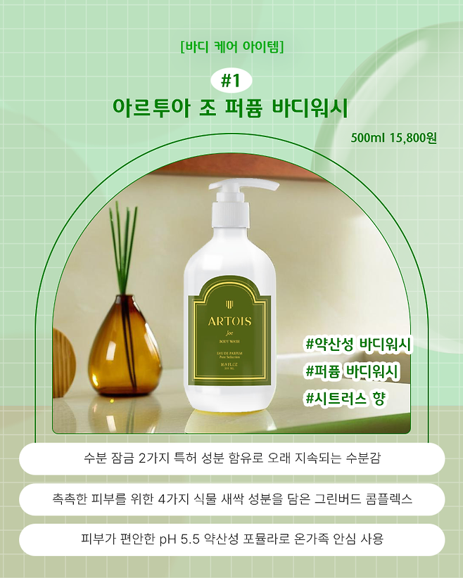 첫 번째 각질제거 화장품 추천은 아르투아 조 퍼퓸 바디워시.