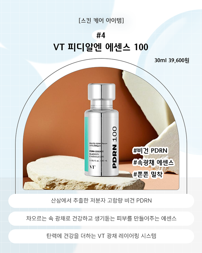 네 번째 각질제거 화장품 추천은 VT 피디알엔 에센스 100.