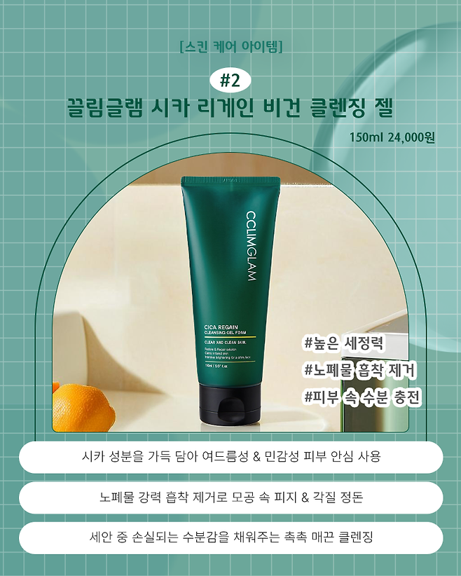 비건 인증까지 받은 순하고 안전한 제품으로, 주성분인 시카 성분이 피부 진정과 여드름성 피부를 완화하는데 도움을 줘서 민감한 피부도 클렌징과 각질제거 케어를 동시에 할 수 있다.
