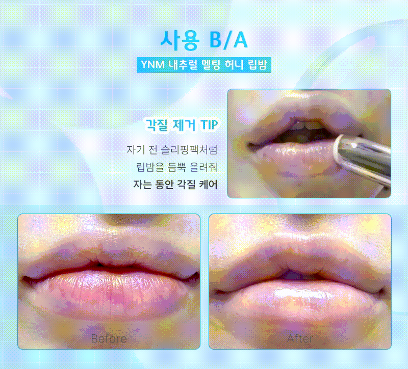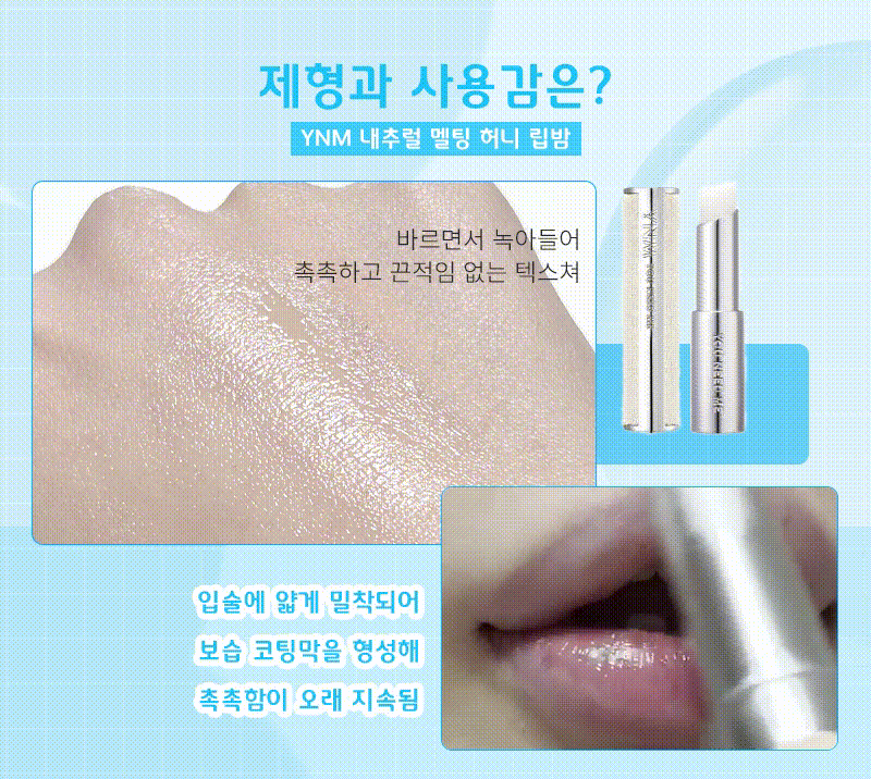 밸런스가 깨지고 예민해진 립을 하루빨리 회복하고 싶을 땐 YNM 허니 립밤을 면봉으로 듬뿍 떠서 자기 전에 발라주자. 그 어떤 립 트리트먼트보다도 강력한 효과를 보장한다.