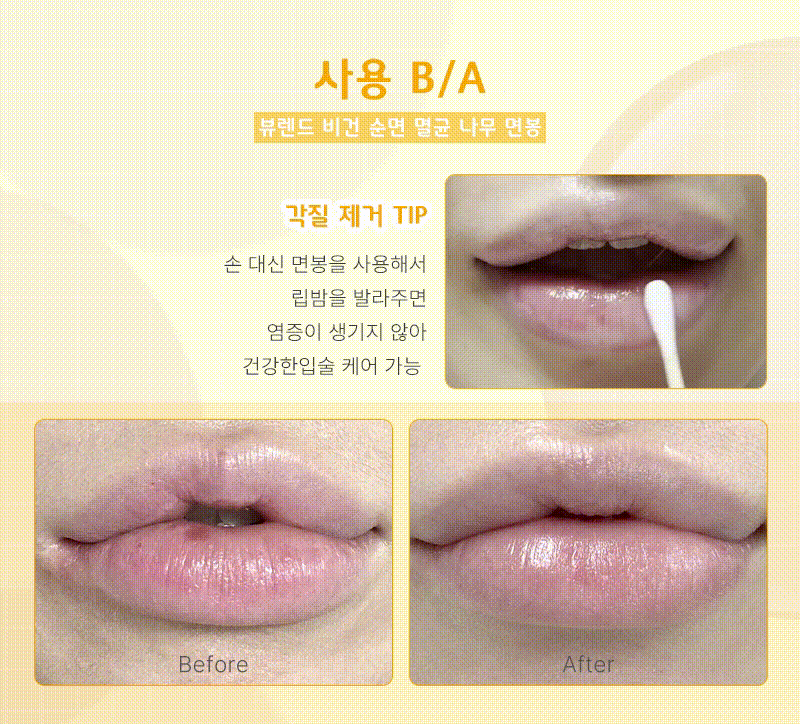 면봉을 사용해서 입 꼬리 쪽 까지 빠짐없이 발라줄 수 있으니 간편했고, 손을 사용하지 않으니 더욱 빠르게 건강한 입술을 가질 수 있었다! 두 명 이상이 같은 립밤이나 립스틱을 사용할 때에는 꼭 면봉을 사용해서 청결하게 관리하도록 하자.