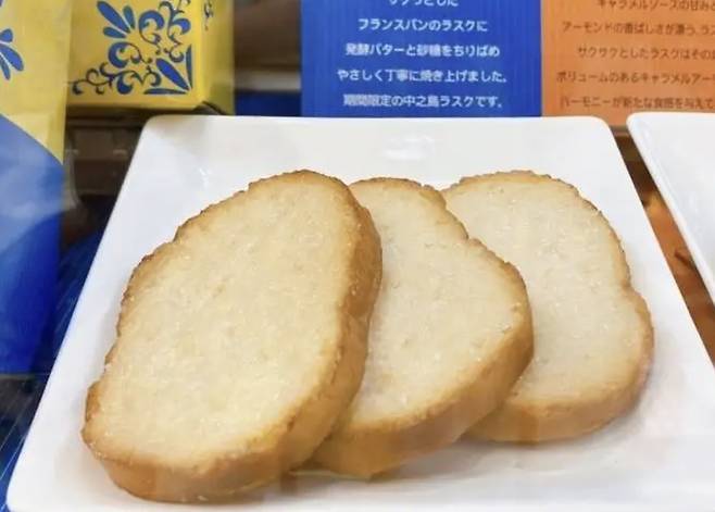 홋카이도산 버터와 설탕으로 만든 바삭한 러스크는 오사카의 유명한 디저트 중 하나다. 바삭한 식감과 풍부한 버터 맛이 특징으로, 간단한 간식으로 즐기기 좋다.
