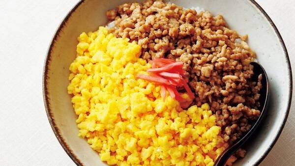 점심: 닭가슴살 소보로 덮밥 + 된장국(채소 풍부) + 배추겉절이